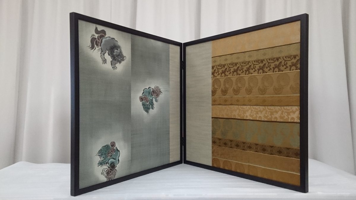 そこで注目したいのが、「着物生地をリメイクして屏風に仕立てる」という新たな発想。和紙裏打ちで布地を安定させ、パネル状にアレンジすれば、世界に一つだけのオーダーメイド屏風(枕屏風など小型のものも含む)へと生まれ変わります。